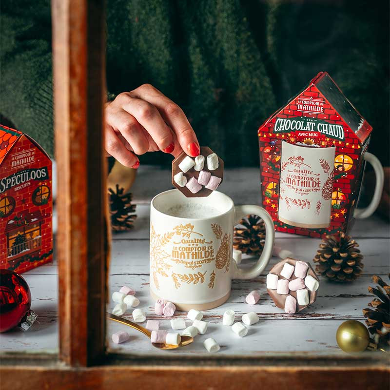 Offrez un instant magique avec le coffret Mug de Noël et Chocosurprise du Comptoir de Mathilde : une tasse gourmande et un chocolat à fondre pour savourer l'esprit des Fêtes.
