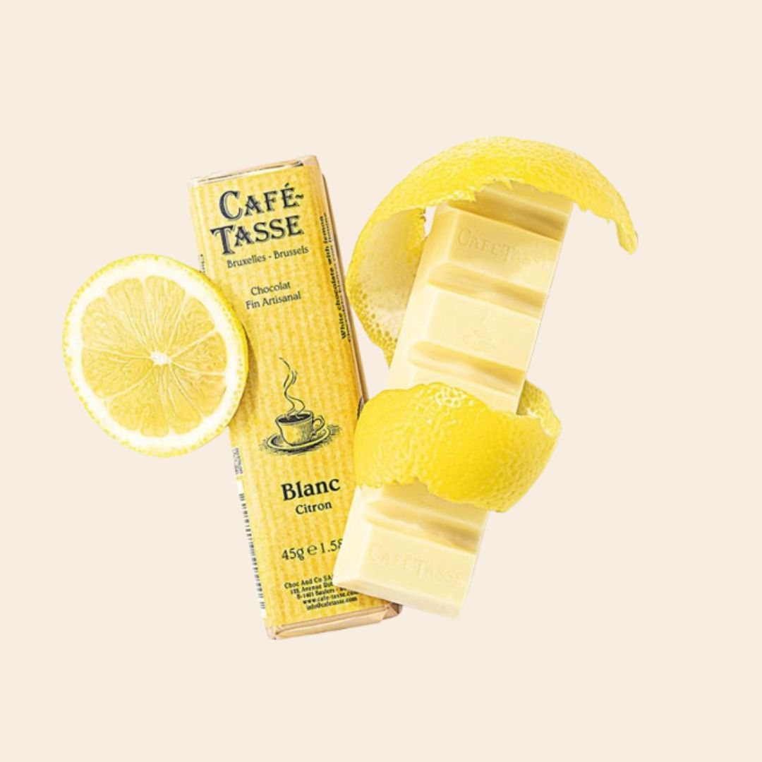 Ingrédients : Sucre, beurre de cacao, lait entier en poudre, morceaux de citron (1,64%), émulsifiant (lécithine de soja), arôme naturel (citron, vanille), sirop de glucose-fructose, correcteur d’acidité (acide citrique).