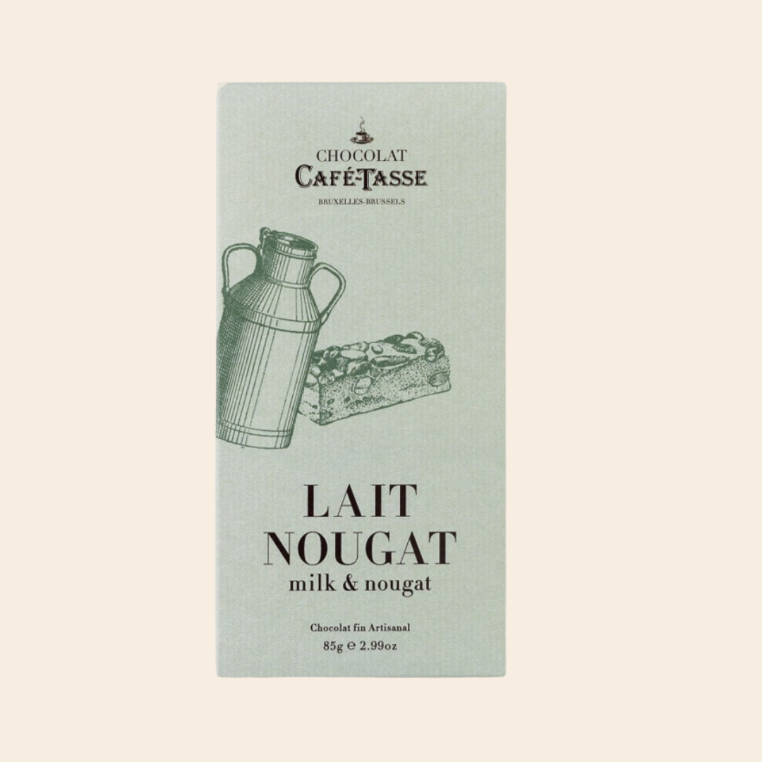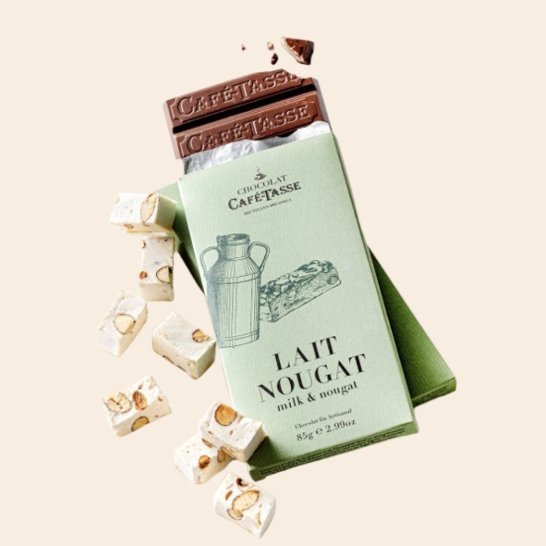 Une délicieuse tablette de chocolat au lait belge signée Café-Tasse, sublimée par des éclats de nougat croquants. Une alliance gourmande entre douceur et texture pour un moment de pur plaisir chocolaté.