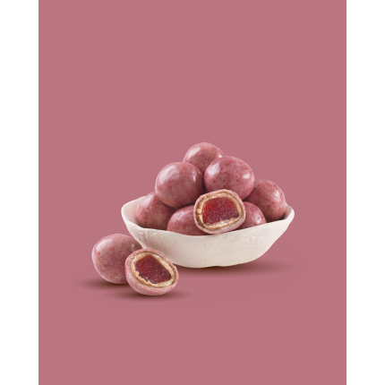 Pâte de Fruit Framboise enrobée de pâte d’Amande et Chocolat
